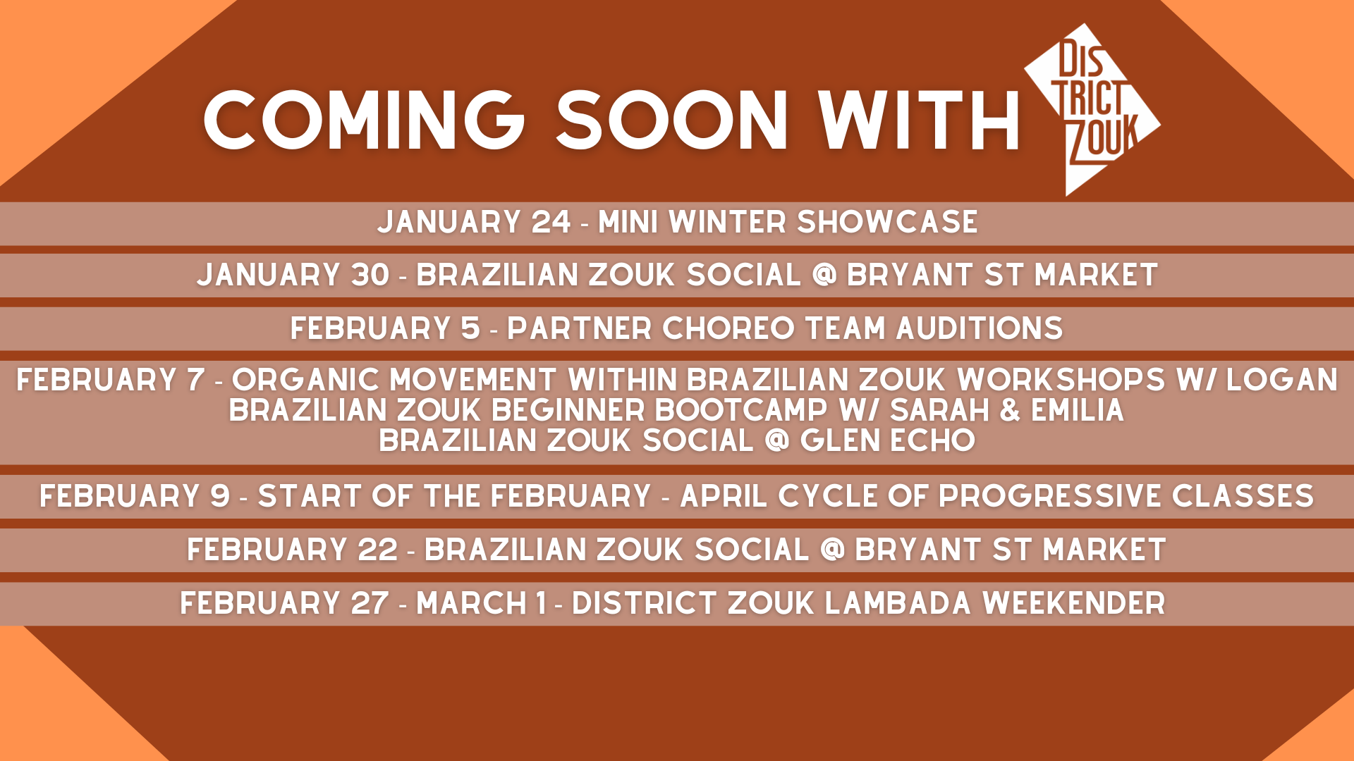 Check out our offerings for the rest of January and February.