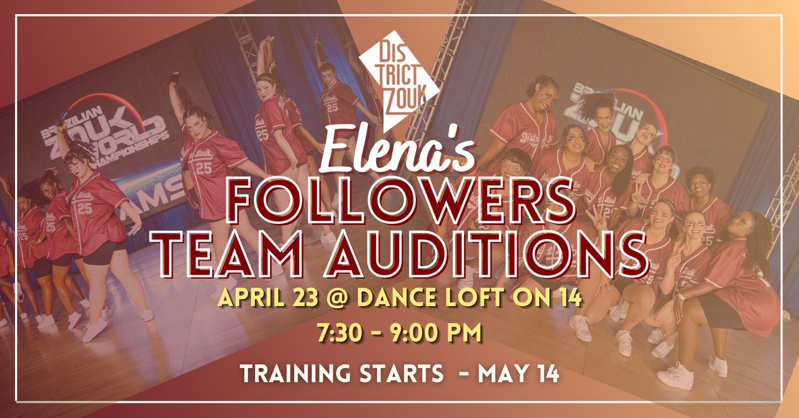 We're kicking off a new season of our advanced Brazilian zouk training team. Our training teams are an opportunity for students who have completed our curriculum to dive deeper into training with other more advanced dancers. This team will run for four months - April through August - with Kuna and Julissa directing it. The workshop-style auditions on April 6 will be with Julissa and Iago.