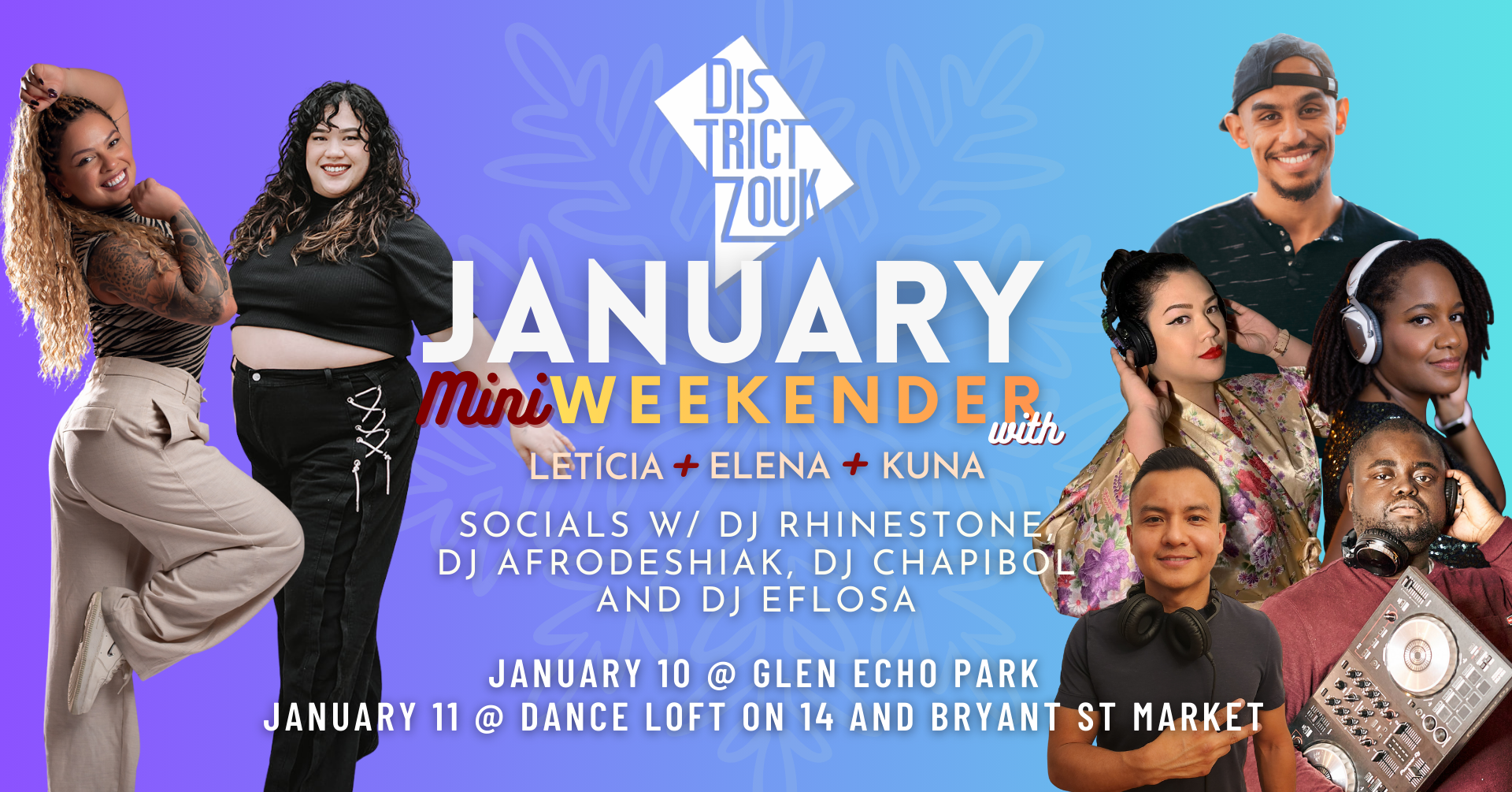 We’re starting the new year with a mini weekender featuring visiting international instructor Leticia Castro and some of our District Zouk team.